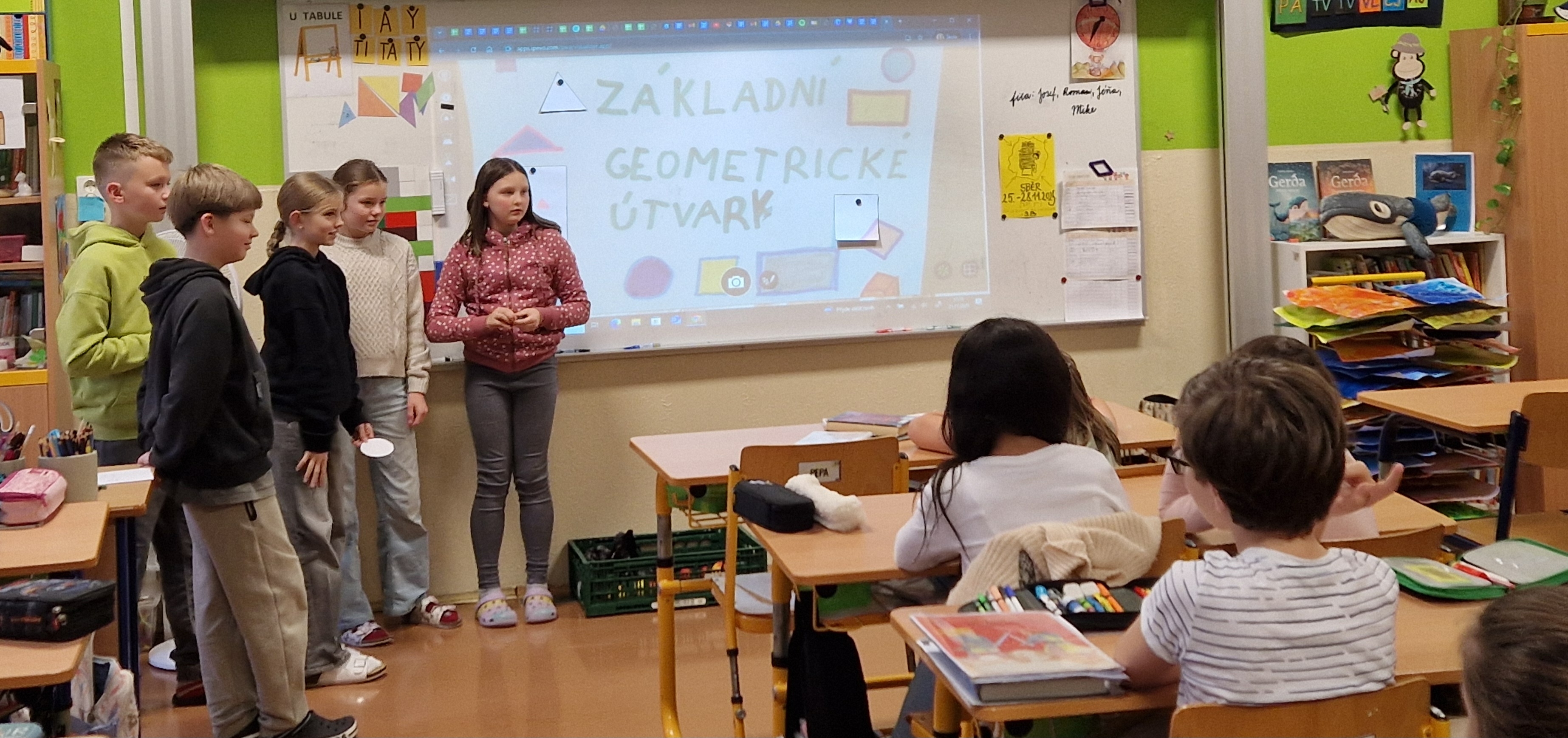 Skupina dětí z 5.B převzala úlohu pedagogů. Připravila a předvedla svým spolužákům z 5.A ukázkovou hodinu matematiky založenou na pedagogických zásadách J. A. Komenského. Pro "malé učitele" to byla cenná lekce zodpovědnosti a pro 5.A nečekaně zábavná hodina. Na závěr jsme si společně zazpívali moderní písničku o "Učiteli národů" - měl by radost :)25. 11. 2025 | O škole > Aktuality > Aktuální zprávy